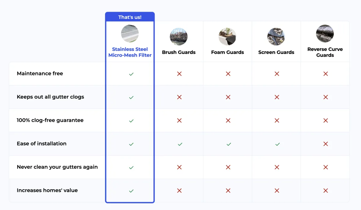 Our stainless steel micro-mesh effectively blocks leaves, pine needles, and roof debris.